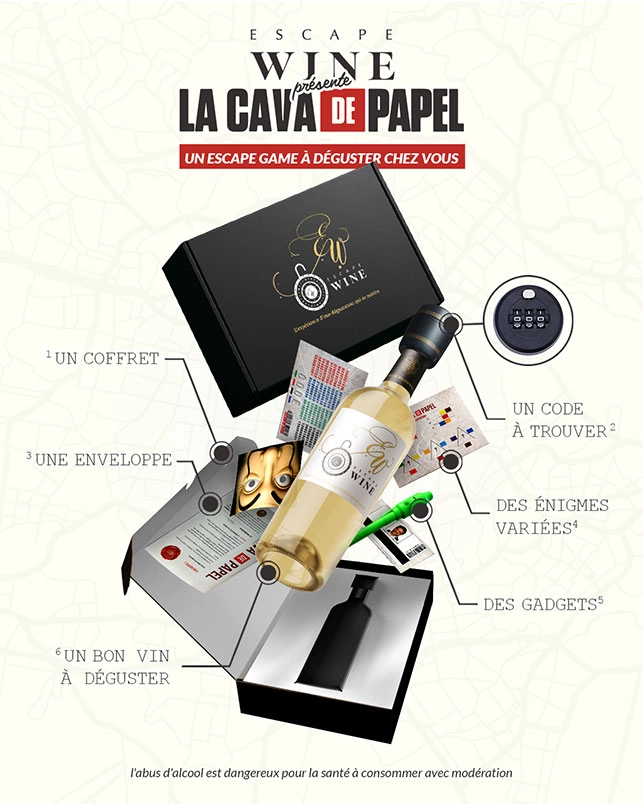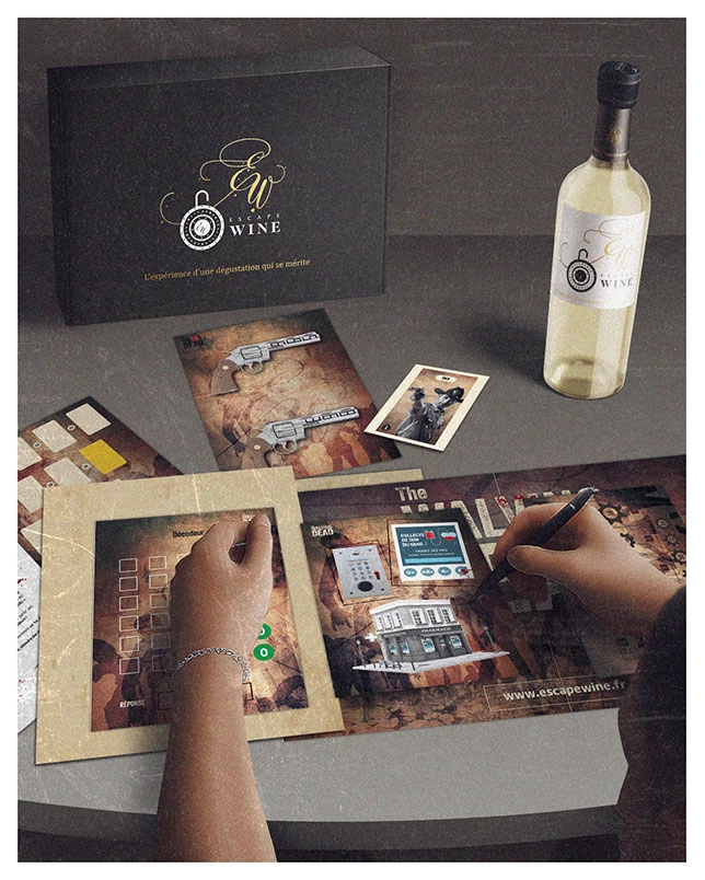 Le défi majeur de ce projet résidait dans l’articulation visuelle d’un concept hybride : marier l’univers ludique de l’escape game à l’élégance traditionnelle de l’œnologie. Il fallait concevoir une communication visuelle capable de démystifier le produit — une boîte à énigmes verrouillant une bouteille — tout en préservant la désirabilité du vin. La complexité consistait à expliquer le mécanisme sans alourdir la composition graphique : comment montrer qu’il faut résoudre des énigmes pour déguster, tout en conservant une esthétique premium ? L’objectif était donc de créer une hiérarchie visuelle claire qui guide le spectateur de la découverte de la marque à la compréhension technique du jeu, jusqu’à la projection dans un moment de consommation convivial.